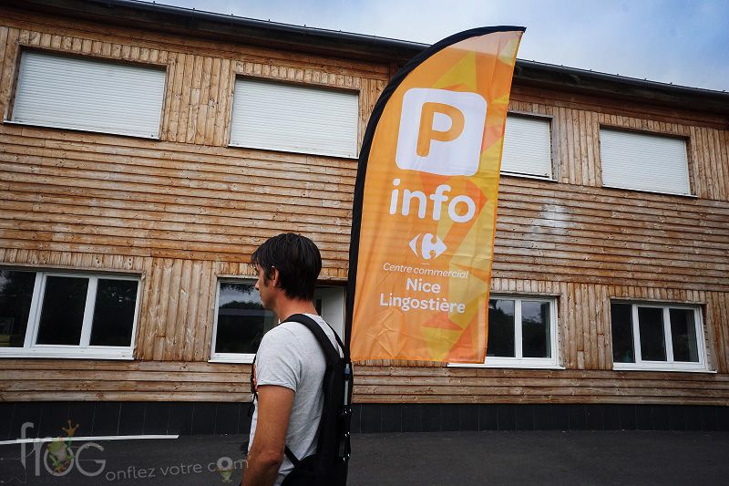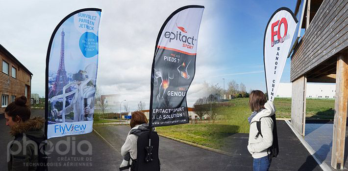 Tout comme le ballon street marketing, le drapeau est fixé sur un sac à dos porté par l’hôte(esse). Il est plus discret !